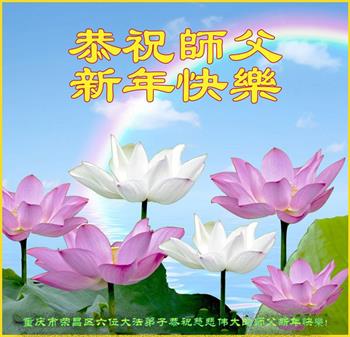 師父您辛苦了!潼南區全體大法弟子恭祝慈悲偉大的師尊新年快樂!