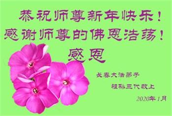 在這邪惡的環境裏、風雨中,我們三人二十年互相配合堅持講真相救人能走到今天,沒有您的保護我們是走不過來的。在此我們懷著無限感恩的心情再次恭祝師父新年快樂!快樂!我們一定不辜負師父的慈悲苦度!謝謝師父!