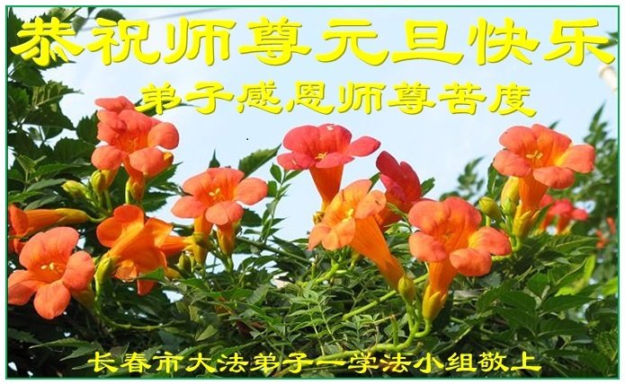 吉林省長春市大法弟子一學法小組大法弟子恭祝師尊元旦快樂!