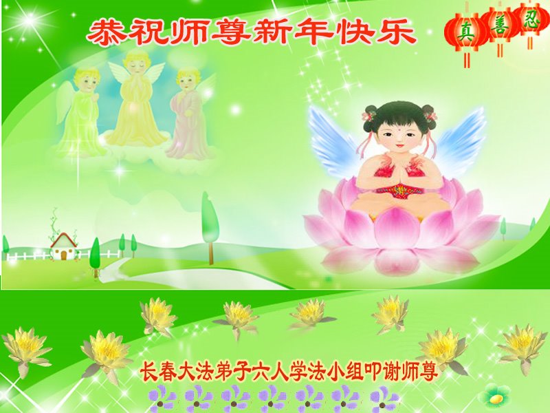 師尊您辛苦了!謝謝師父!在新年到來之際,全體農安縣大法弟子叩拜師尊!恭祝師尊新年快樂!請師尊放心,弟子們一定學好法,修好自己,相互配合好,講好真相,多救人,絕不辜負師尊的慈悲苦度!
