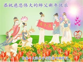 在新的一年裏,弟子一定加倍努力精進實修,多救人,報答師尊慈悲的救度之恩。