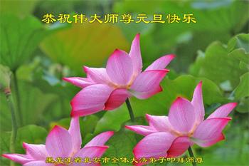 師父您辛苦了!在這新年到來之際,我們學法小組大法弟子恭祝師尊新年快樂!在師父的保護下弟子平穩的又走過了一年。在新的一年裏,弟子要更加精進,做好三件事,不辜負師父的慈悲救度。弟子叩拜師尊!