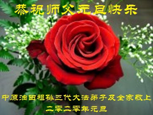 中原油田祖孫三代大法弟子及全家祝師父元旦快樂!