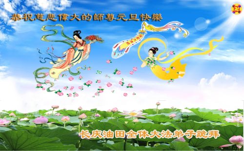黑龍江省大慶油田一大法弟子恭祝慈悲偉大的師尊元旦快樂!