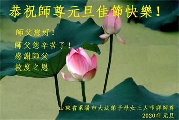 二零二零年元旦佳節到來之際,山東省萊陽市大法弟子母女三人恭祝慈悲偉大的師尊元旦佳節快樂!