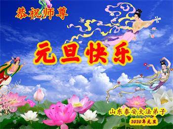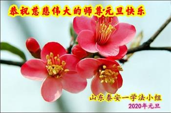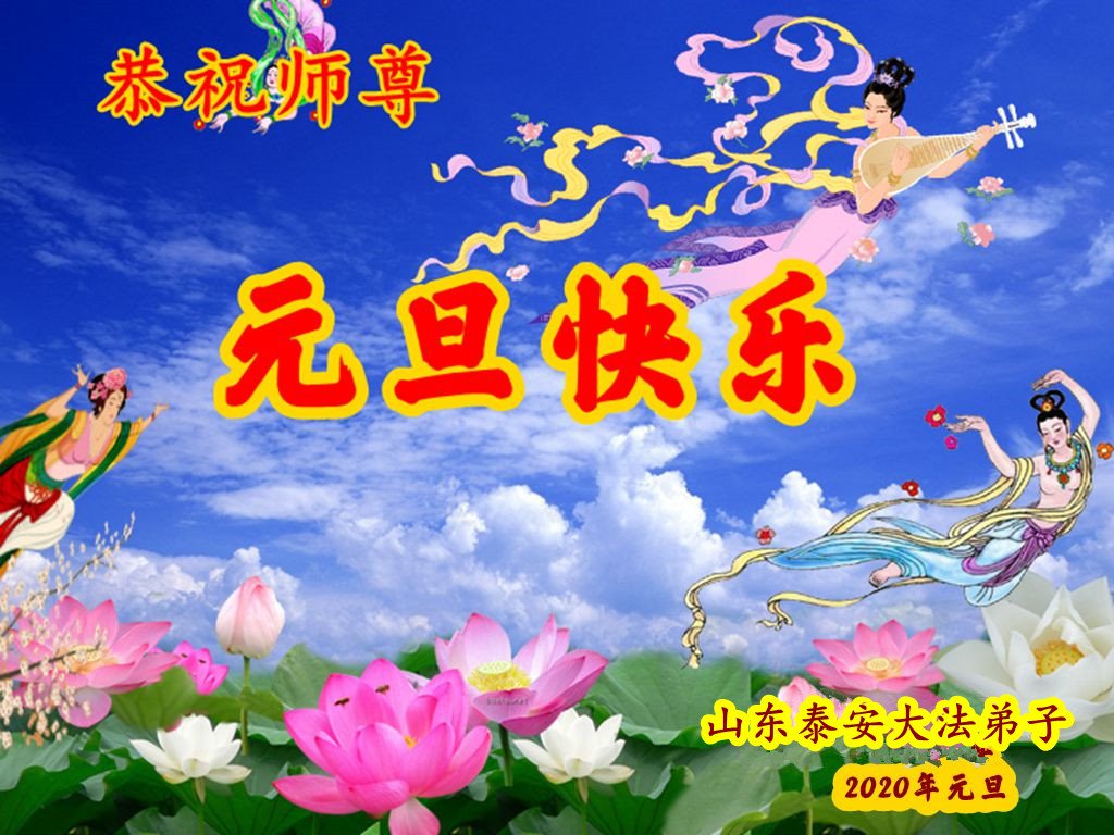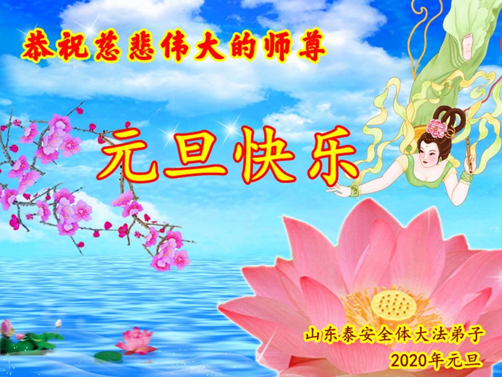 山東泰安全體大法弟子恭祝慈悲偉大的師尊元旦快樂!