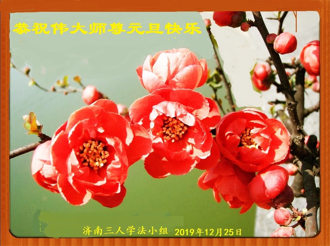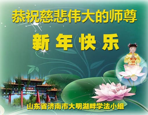 山東濟南一學法小組全體同修在新年來臨之際:恭祝慈悲、偉大的師尊新年快樂!