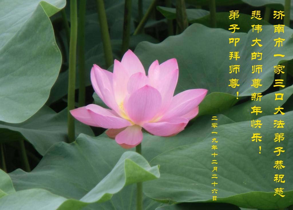 山東省濟南市一家三口大法弟子恭祝慈悲偉大的師尊新年快樂!