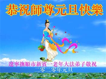 遼寧省撫順市新賓縣一老年大法弟子恭祝師尊元旦快樂!