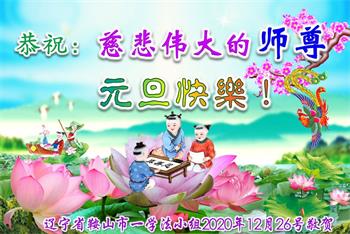 我們是遼寧省的三位大法弟子,在新年到來的時候,用最虔誠的叩拜:恭祝慈悲偉大的師尊新年快樂!在新的一年我們要精進再精進,不負大法弟子的歷史使命!