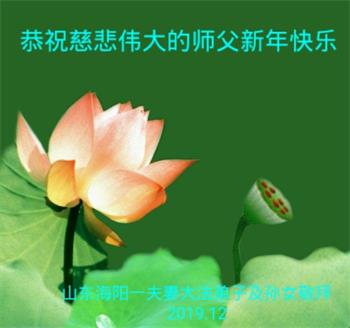 山東省煙台市海陽市一鄉村夫妻同修及小孫女恭祝慈悲偉大的師尊新年快樂!
