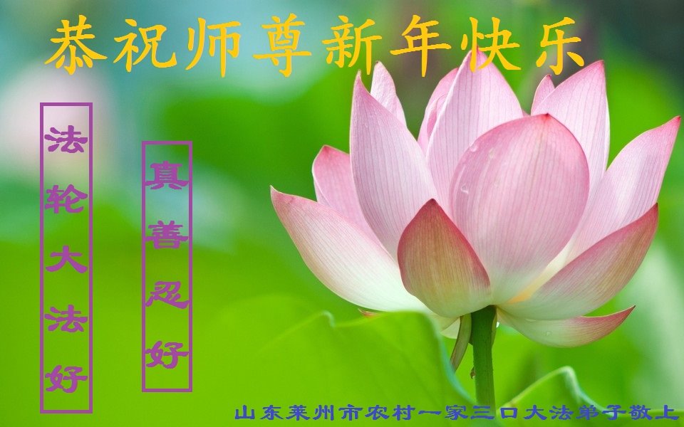 山東威海市文登區一農村大法弟子代表一學法小組與明白真相並在大法中受益的一家四口恭祝慈悲偉大的師尊新年快樂!