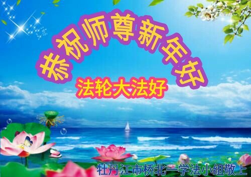 黑龍江省牡丹江市橋北一學法小組大法弟子恭祝師尊新年好!