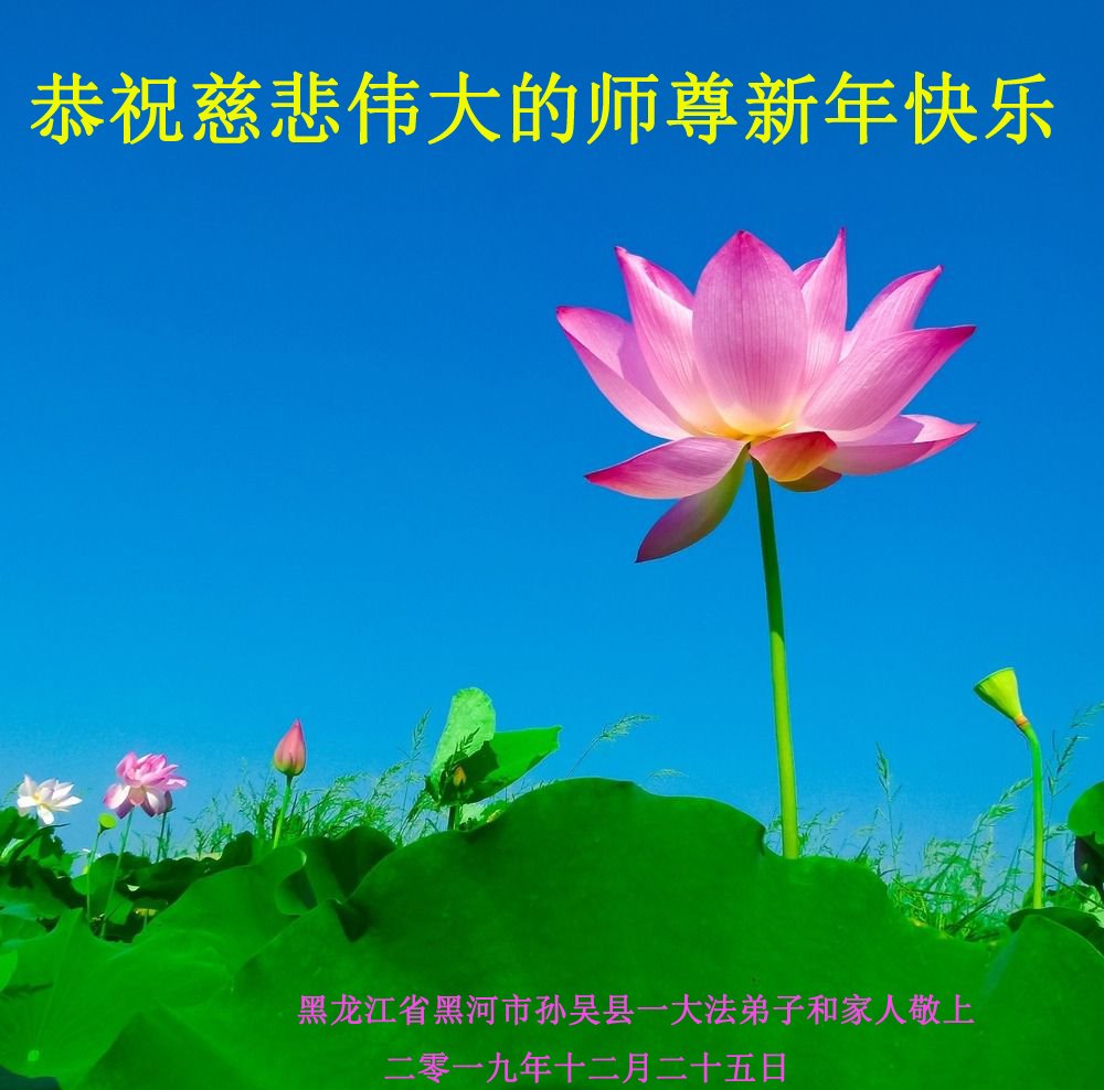 黑龍江省黑河市孫吳縣大法弟子及家人恭祝慈悲偉大的師尊新年快樂!
