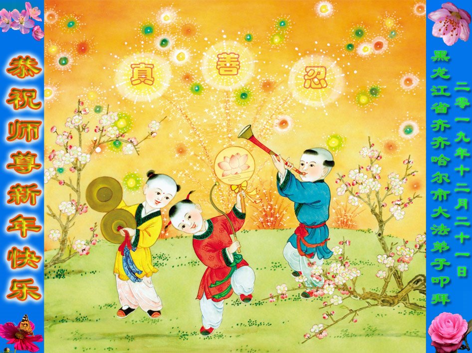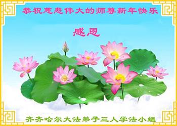 黑龍江齊齊哈爾三人學法小組大法弟子恭祝師尊新年快樂!