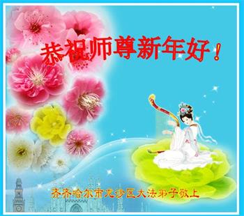 黑龍江省齊齊哈爾市大法弟子恭祝師尊新年快樂!