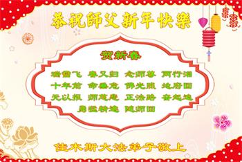 值此新年來臨之際,大法弟子感念師父救度之恩。我們唯有遵照大法,比學比修,遇事向內找,正念配合,做好三件事,多救人,才能不辜負師父的慈悲苦度!