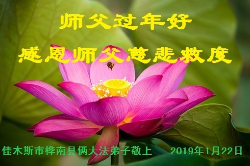 師父過年好!您辛苦了!請接受黑龍江省湯原縣全體大法弟子二零一九新年敬拜!感恩師父!感恩大法!謝謝您,慈悲偉大的師尊!