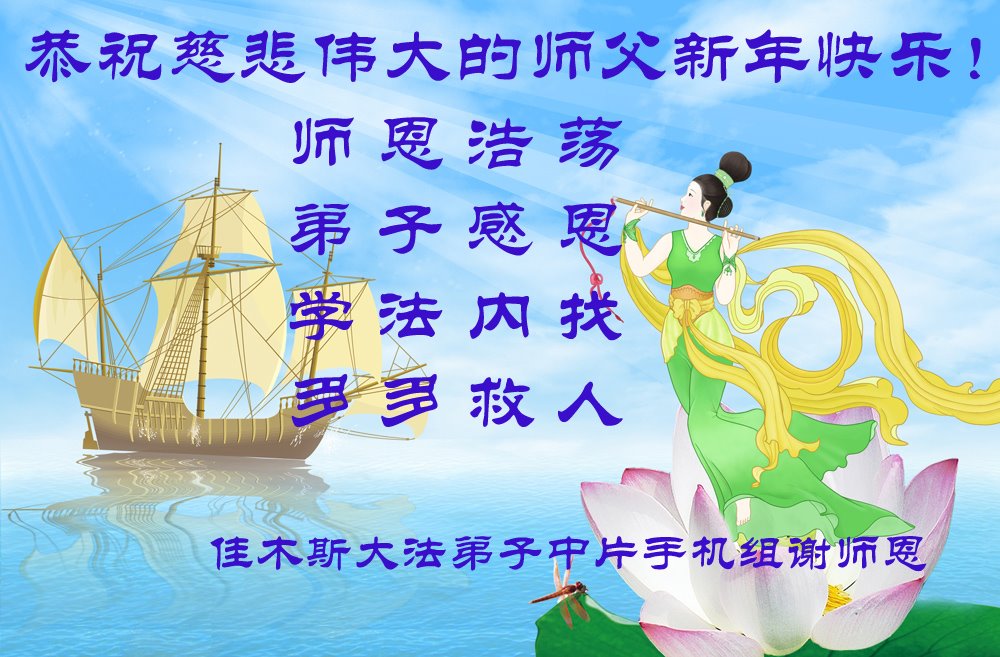 黑龍江佳木斯大法弟子中片手機組恭祝師父新年快樂!