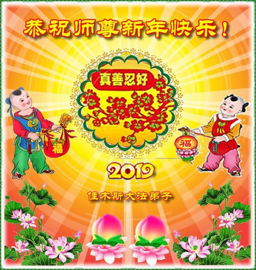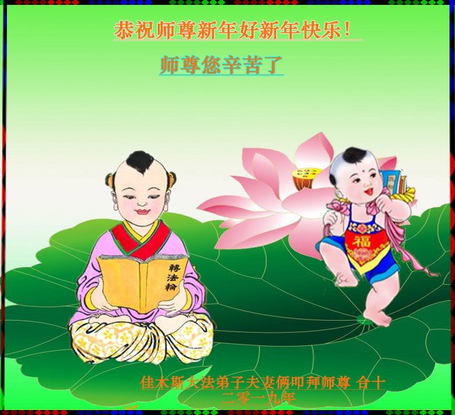 祝恩新年好!法輪轉動乾坤正,環球又一年。辭舊迎新過大年,祝師新年好!走正返本歸真路,感恩師尊度!向內找去執著,做好三件事,隨師還不是盼。
