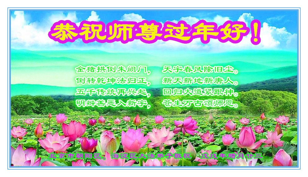 北京亞運村大法弟子恭祝師尊新年快樂!