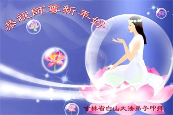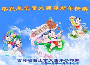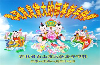 吉林省白山市大法弟子給慈悲偉大的師尊拜年,弟子誠心叩拜拜謝師恩!恭祝師尊新年好!新年快樂!