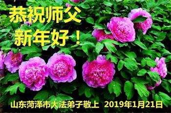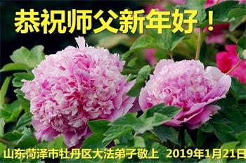 山東菏澤市牡丹區大法弟子及全家人恭祝師父新年好!