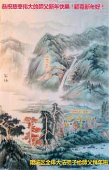 尊敬的師父您好,過年快樂!在這一年裏師父您太辛苦,我要珍惜師尊用巨大的付出和承受換來的正法時間的延續,踏踏實實的修好自己,今後不管遇到甚麼艱險,要堅信師父,堅信大法,加強意志力,逆流而上,更努力的做好三件事,兌現自己的誓約,完成助師正法的歷史使命,努力救度眾生,隨師返家園。