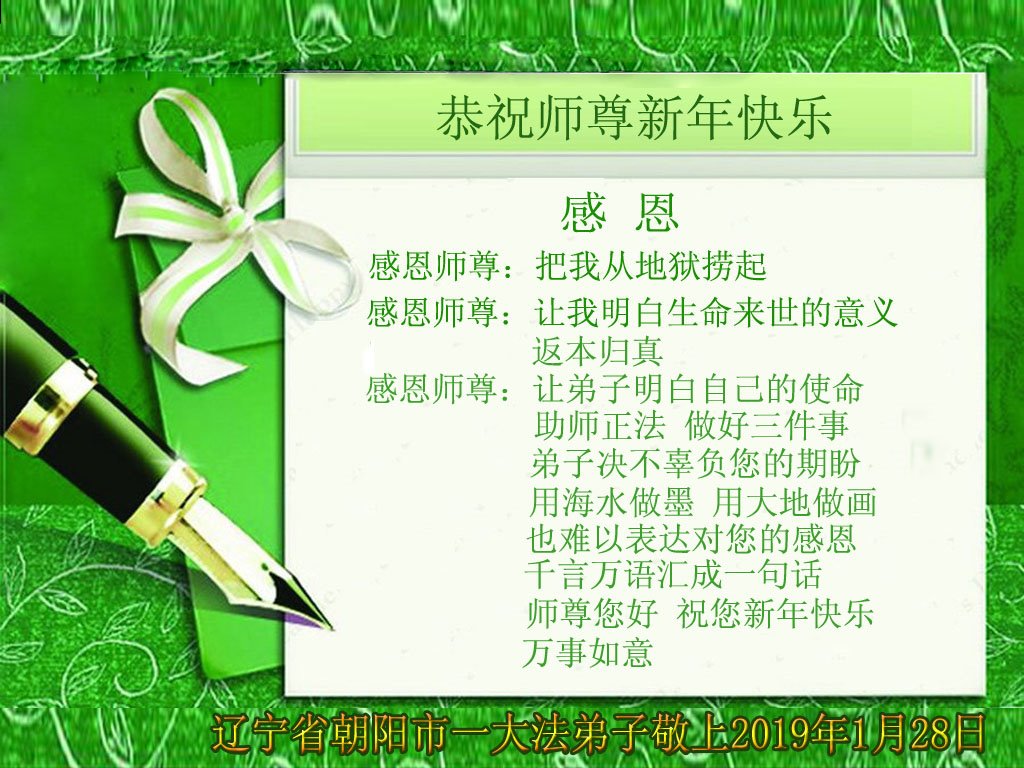 感恩師父的慈悲保護。弟子唯有精進,學好法,修好自己,多救人。做好三件事。在大年來臨之際,北票一家大法弟子祝師父過年好!