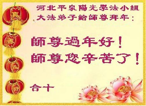河北平泉陽光學法小組大法弟子給師尊拜年!師尊過年好!師尊您辛苦了!