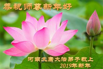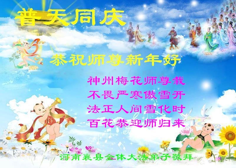 河南省洛陽市一老年大法弟子恭祝慈悲偉大的師尊新年快樂!