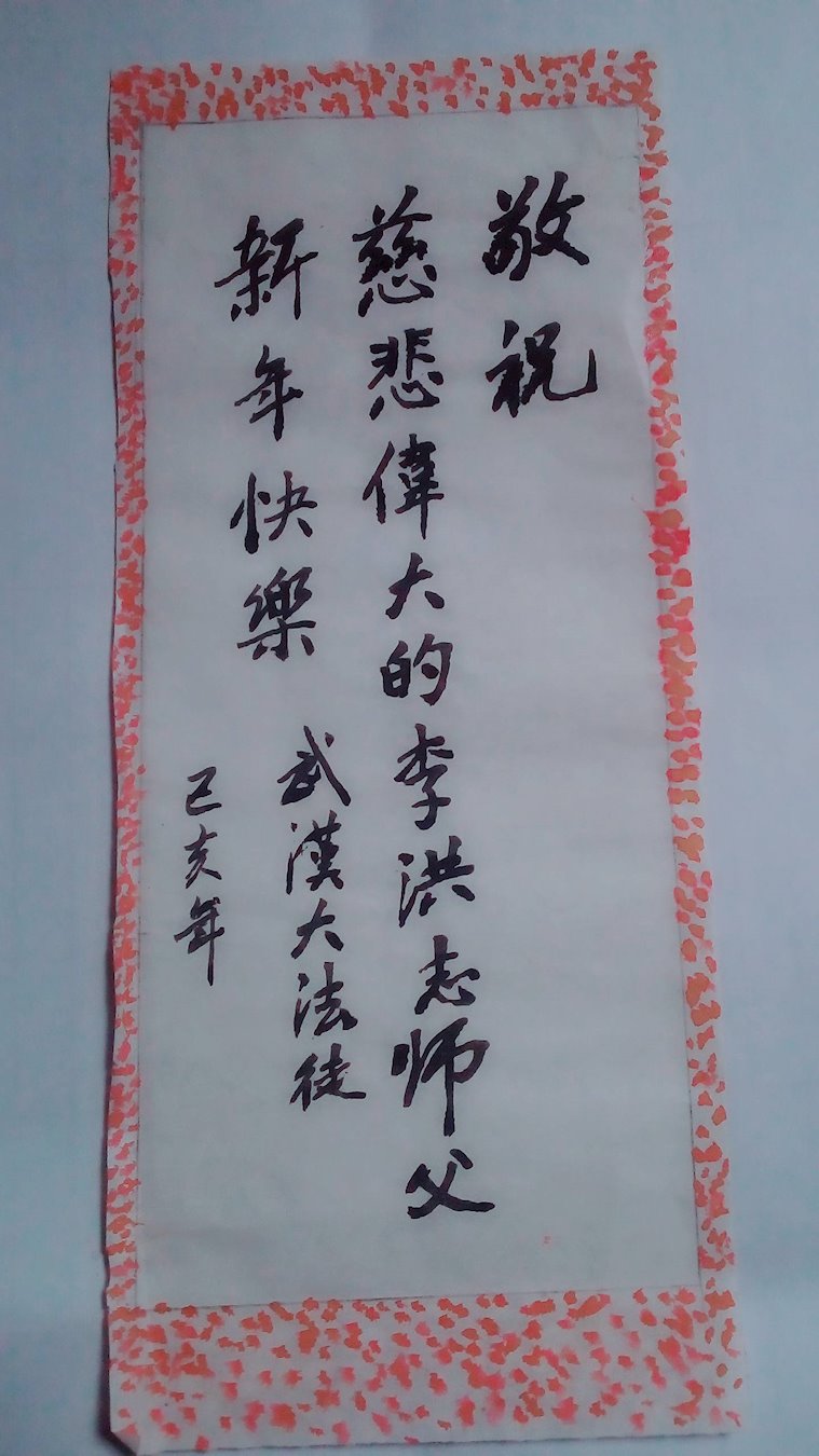 湖北省武漢市武昌區一大法弟子全家恭祝慈悲偉大的師尊過年好!