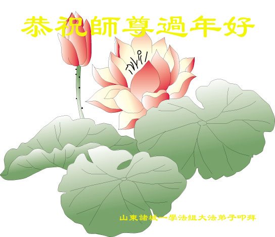 我代表我全家人恭祝偉大的師尊新年好!師尊您好!您辛苦了!新的一年到來了,時間好快啊,弟子在師尊慈悲保護下走到今天。弟子一定走好以後的路,精進實修做好三件事,有事向內找,多救眾生,多學法。在新的一年裏唯有精進再精進,報答師尊。盼望師尊早一天回國團聚。弟子叩拜師尊!