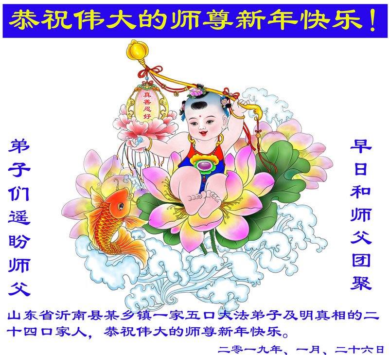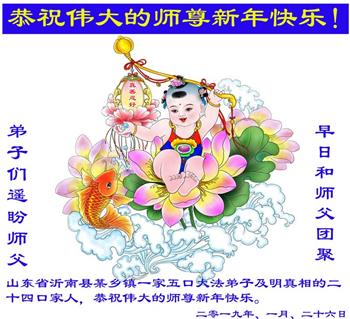 山東省臨沂市沂南縣一家五口大法弟子及二十四口家人恭祝偉大的師尊新年好!