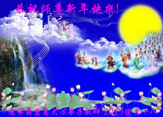 興城市海濱鄉全體大法弟子給慈悲偉大的師尊拜年!師父過年好!師父過年好!師父過年好!