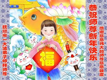 遼寧鱍魚圈一大法弟子及家人恭祝師父新年快樂!