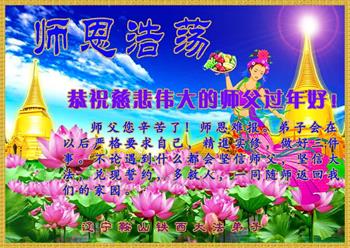 我們跪拜師尊,恭祝慈悲偉大的師尊過年好!感恩師尊的慈悲苦度,佛恩浩蕩。新的一年裏,我們一定修好自己,做好大法弟子的三件事,跟師尊回家。