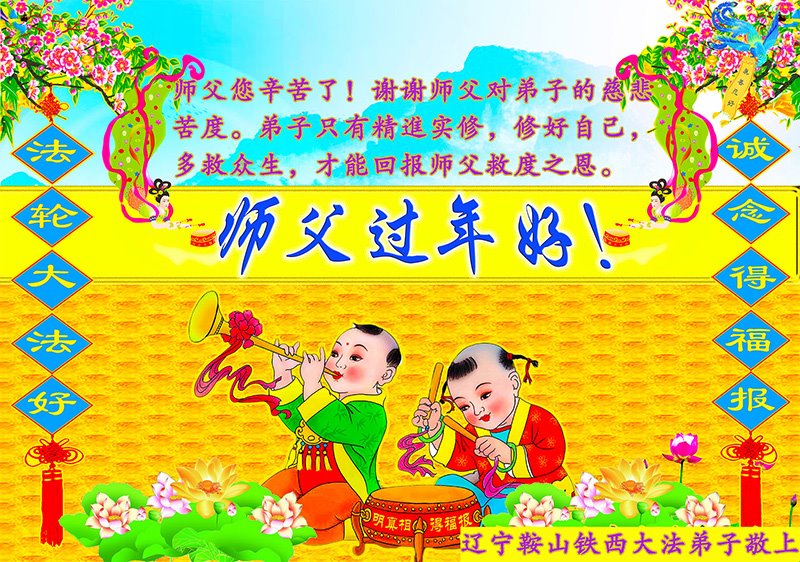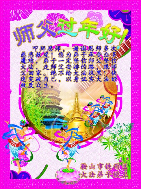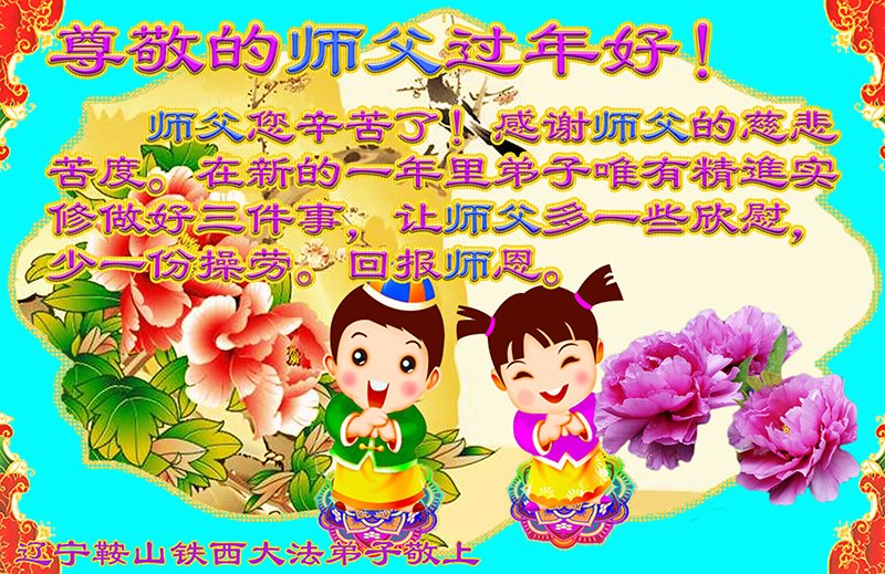 遼寧鞍山鐵西大法弟子恭賀尊敬的師父過年好!