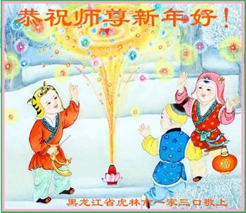 我們全家衷心感謝慈悲偉大的師父在末法末劫時期傳法度我們,救我們出苦海。這幾年我們也見證了大法弟子以法為師救人的壯舉。我們再一次感謝師父的慈悲救度。恭祝師父過年好!