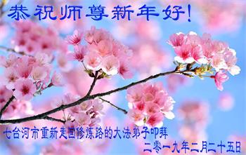 我是黑龍江省嫩江縣大法弟子,我代表我地大法弟子恭祝師尊新年快樂!謝謝師尊慈悲苦度。我們一定不負師尊,做好我們該做的。
