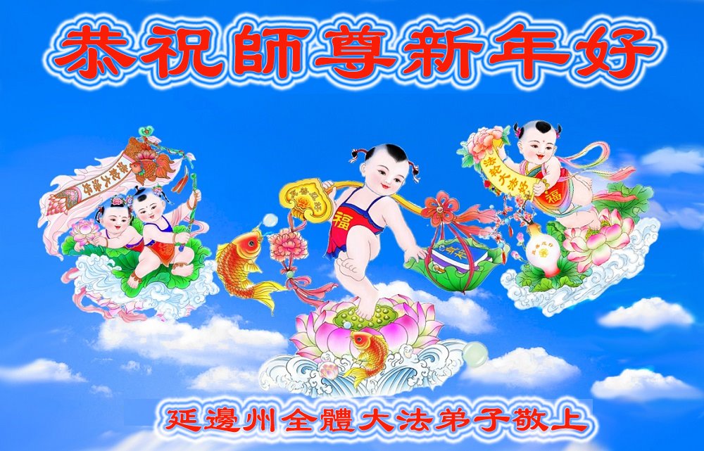 在這辭舊迎新、歡慶傳統節日的時刻,我作為大法弟子叩拜在您的面前,給慈悲偉大的師尊拜年,恭祝師尊新年快樂!我一定聽您的話,修煉如初,要做好師父要求的三件事,勇猛精進,多救眾生,向內找,越到最後越精進,圓滿隨師尊回家。