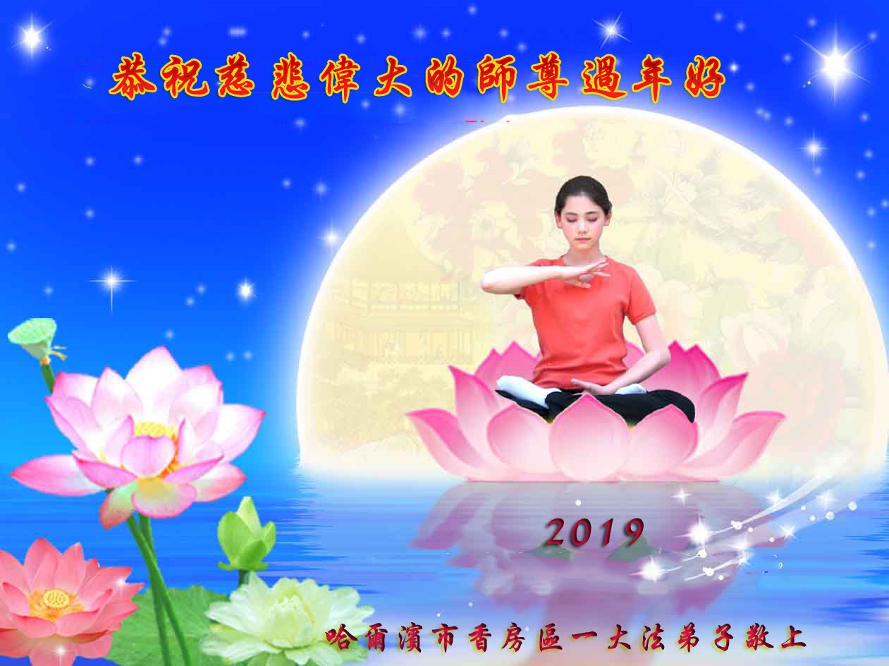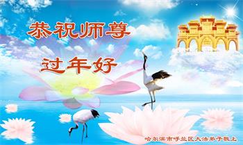 哈爾濱市道裏區一學法小組大法弟子恭祝慈悲偉大的師尊過年好!