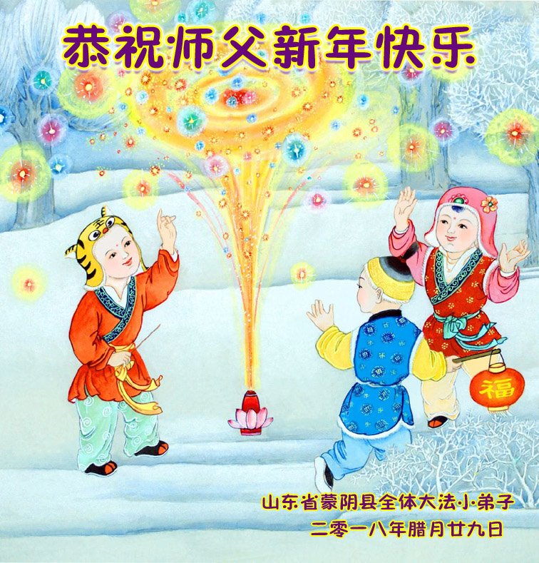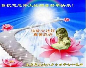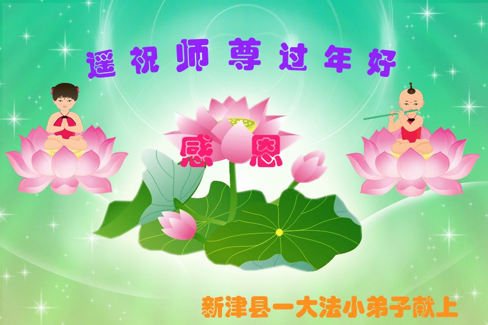 *大法小弟子二:師父您好,作為眾多大法小弟子中的一員,我與身邊的同修還有著不小的差距,但我會努力跟上不掉隊,跟師父回家,值此新春佳節,普天同賀之際,恭祝師父新年快樂!