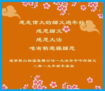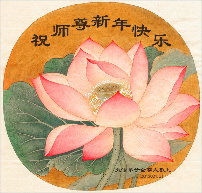 在新的一年到來之際,我代表全家,向慈悲偉大的大法師尊拜年!:師尊新年好!師尊新年快樂!2019年2月1日。