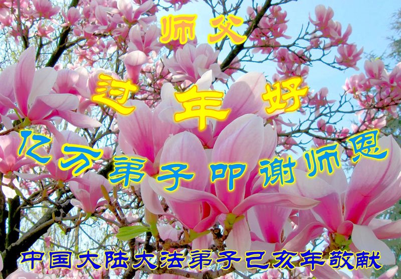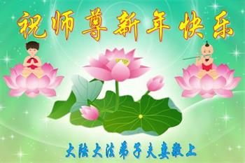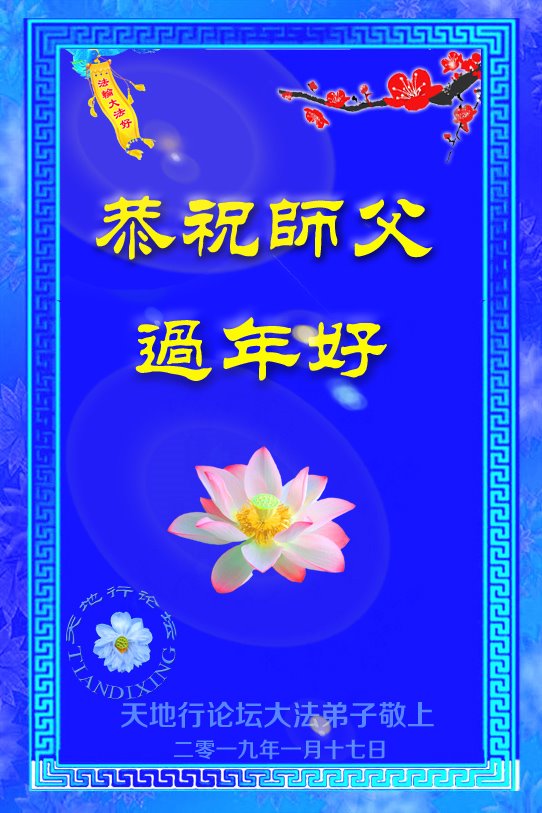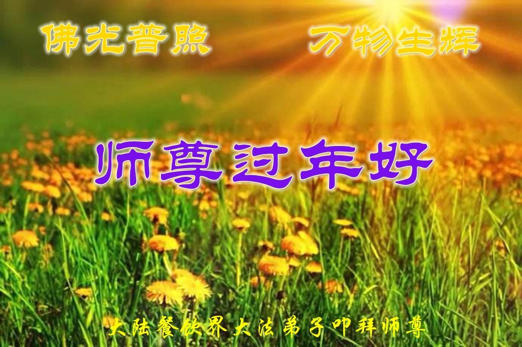 師父新年好!我們大法弟子的每一步都離不開師尊的慈悲保護,萬語千言、千言萬語都無法表達師父的洪恩!我們從爭名奪利、爾虞我詐中傷人害己甚麼都不懂一身是病的常人脫胎成俗世淨蓮,不佔惡習的為他境界,是恩師無量的胸懷日復一日的講法開示天機,讓我們明白了不失不得的法理。在日常生活中我們都對照大法的法理嚴格要求自己,正派、大氣,做事考慮別人。總之我們不但身體好了,心態也健康了。在這新年來臨之際,我們想念師父,也覺的離法要求的還差很遠,但我們會努力修好自己抓緊救人,請師尊放心!我們全家老少不管多少人都敬謝恩師救度之恩!弟子們三叩九拜謝謝師父!師父新年好!希望早日見到師父!