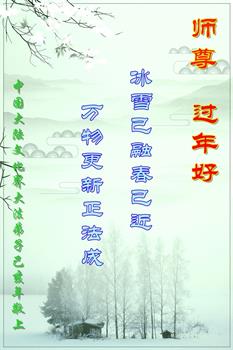 請師尊放心,在新的一年裏弟子一定要放下人心,精進實修,學好法,煉好功,做好三件事,多救人,做一名合格的大法弟子,兌現誓約,圓滿隨師還。
