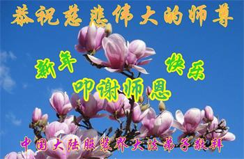 敬愛的師尊:祝您新年快樂!靈壽縣全體大法弟子給師父拜年了!我們熱切盼望著早日在大陸聽您講法!儘管我們做的差距很大,但我們堅信一定要跟您修煉到底!我們知道春天來了,大法弟子的春天,眾生的春天就要到了!靈壽縣全體大法弟子叩上