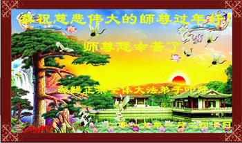 慈悲的師尊您好,我們中國大陸一學法小組全體大法弟子非常想念您!在新年來臨之際,我們恭祝師父新年好!我們在新的一年裏要繼續做好三件事,多救人,跟師父回家。