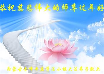 師父過年好!轉眼間又是新的一年,我們時刻都在想念您!感恩師父從地獄中把我們撈起,洗淨我們生生世世的業力。無法用語言謝師尊苦度,我們在今後的修煉中發揮好整體的作用,向內找,修人心,切實走好修煉的每一步,抓緊最後的時間,認真學好法,做好三件事,救度眾生,功成圓滿,跟師父回家。全體大法弟子跪拜師尊!
