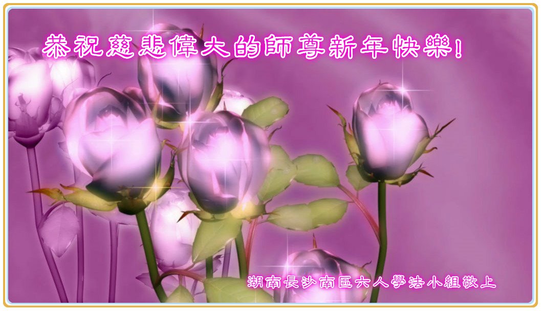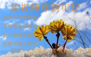 新的一年裏,弟子們一定多學法,學好法,做好三件事,做好師父所要的,越是最後越精進,兌現自己的神聖使命,我們全體學員感恩師尊的慈悲苦度,祝慈悲偉大的師尊新年好!全體學員叩拜師恩!